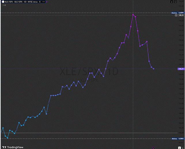 El sector energético en bolsa tiene una imagen similar. Después de uno de los períodos de outperformance relativo más extendidos de su historia (tanto en términos absolutos como relativos), los indicadores de momentum empiezan a girar. No es un adiós definitivo al sector. Es un "hasta luego": toca esperar a que el ciclo madure y aparezca una entrada más asimétrica más adelante.