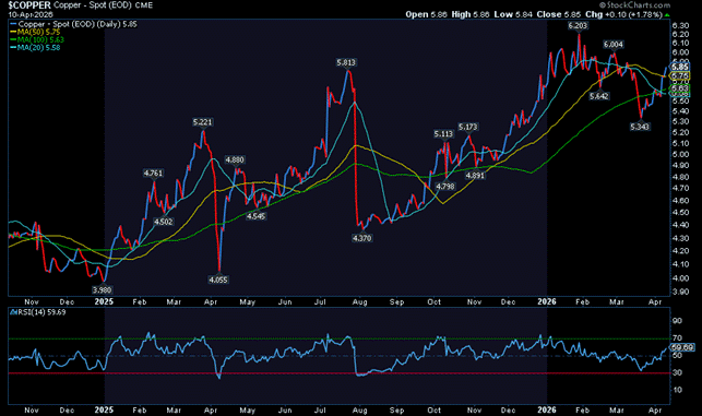 El cobre merece mención aparte: ya ha roto al alza su estructura y está liderando el movimiento. No es casual. El cobre tiende a adelantarse a los ciclos industriales y a la demanda global. Cuando el cobre se mueve antes que el resto, conviene prestarle atención.