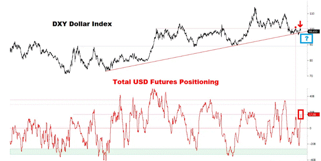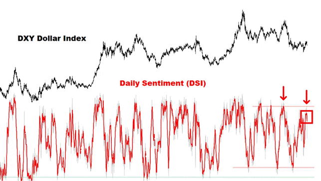 Hay algo más, y tiene su punto de ironía. Ser bajista en dólar hoy es una posición “contrarían”. El sentimiento alcista en el billete verde acaba de alcanzar la misma zona de máximos en la que estaba el año pasado, justo antes de que empezara a caer. No es un argumento suficiente por sí solo, pero añade presión al escenario.