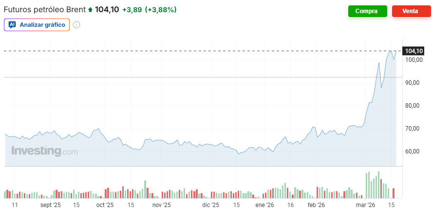 Por eso el crudo (futuros del Brent) continúa orbitando la zona de los 100 dólares. No porque el mercado crea que todo va a empeorar mañana, sino porque todavía no ve una desescalada real ni una prueba tangible de que Ormuz vuelve a fluir con normalidad. Y mientras eso no ocurra, el petróleo difícilmente va a caer de forma limpia.
