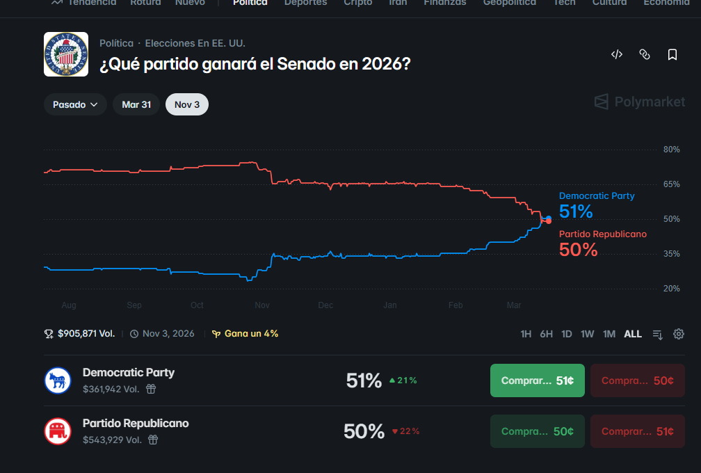 Hay además una derivada política que empieza a ser demasiado importante como para ignorarla. Desde que empezó la guerra, el coste electoral del conflicto ha empezado a moverse en la misma dirección que la gasolina: hacia arriba. Cuanto más tiempo sigan los carburantes en estos niveles, más desgaste acumulan Trump y el Partido Republicano de cara a las elecciones de medio mandato. El precio de la gasolina no es solo una variable económica. Es una encuesta diaria en la estación de servicio. Puede que aún aguanten algo más la presión. Pero si ese castigo se prolonga y los demócratas amplían ventaja, el margen político para estirar el conflicto se reducirá con rapidez.