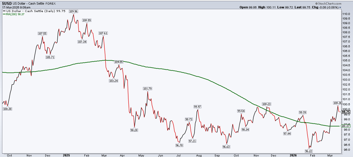 El dólar acompañó el movimiento. El DXY retrocedió un 0,57% hasta 99,79, en su peor sesión en más de un mes. La lógica es sencilla: si baja el petróleo, baja parte de la presión sobre la factura energética mundial y también se relaja la demanda global de dólares. Eso sí, técnicamente el billete verde sigue por encima de sus medias principales y el sesgo táctico continúa siendo alcista a medio plazo, apoyado en la idea de excepcionalidad económica de Estados Unidos.
