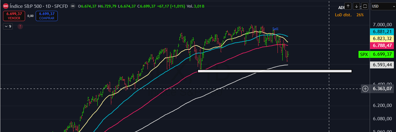 Y, mientras todo eso pasa, la Bolsa ha hecho algo bastante lógico desde el punto de vista técnico: rebotar en la zona de la media de 200 sesiones. El S&P 500 defendió el entorno de 6.600 puntos, con soporte crítico en 6.630 y la gran resistencia en la media de 50 días, cerca de 6.800. El Nasdaq necesitaba ese rebote tras perder su propia media de 200, pero su RSI sigue por debajo de 50, lo que nos dice que todavía no hay verdadera fortaleza interna. El Fear & Greed de CNN cerró en 19,97, nivel de miedo extremo que históricamente suele coincidir con suelos temporales o rebotes por agotamiento vendedor.