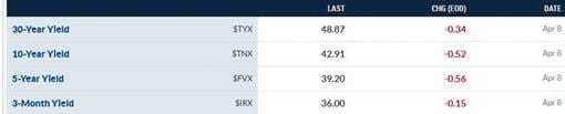 La TIR del bono americano a 10 anos cerro en el 4,291%, su mínimo de cierre en casi tres semanas, -13 pb desde los máximos de finales de marzo. El mercado de bonos no está cotizando resolución definitiva, y eso es un dato positivo: no hay euforia excesiva en la curva. La curva americana sigue con pendiente positiva en toda su estructura: 3 meses al 3,600%, 5 años al 3,92%, 10 años al 4,29% y 30 años al 4,88%. Una curva que descuenta crecimiento a largo plazo, no recesión.