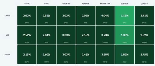 El factor dominante del día fue el Momentum (+4,04% en large cap), no el Growth como puede parecer a primera vista. El factor Quality tambien brillo (+3,41% en large cap). El rezagado relativo fue Low Volatility (+1,15% en large cap): cuando el mercado sale a comprar riesgo de golpe, los defensivos de baja volatilidad se quedan atrás. Lógico.